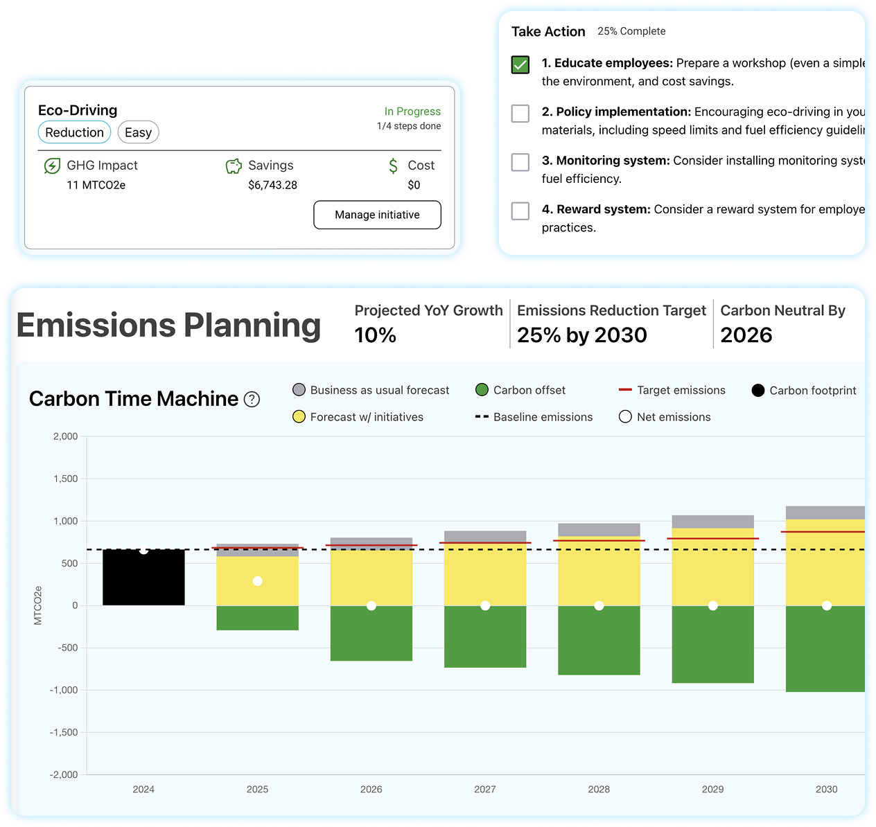 Calculate your company carbon footprint, identify emissions reduction initiatives, and achieve carbon neutral. We make it easy to get started and take meaningful action on climate impact.
