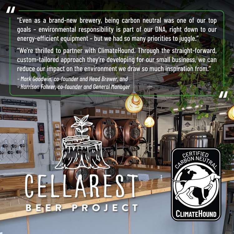 "Even as a brand-new brewery, being carbon neutral was one of our top goals - environmental responsibility is part of our DNA, right down to our energy-efficient equipment - but we had so many priorities to juggle. We're thrilled to partner with ClimateHound. Through the straight-forward, custom-tailored approach they're developing for our small business, we can reduce our impact on the environment we draw so much inspiration from."